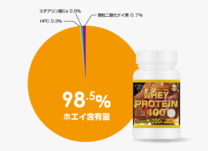 しかも、筋肉に必要なタンパク質を摂取する際に強い味方になってくれるホエイが98.5%も含まれているんです。
